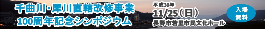 1918(大正7)年に始まった第1期千曲川改修事業以降、第2期改修事業に着手し、今日にいたるまで、流域の人々の生命と財産を洪水から守るため、河川改修事業を行ってきました。そして2018(平成30)年、千曲川・犀川直轄改修事業は100周年を迎えます。今日の流域の繁栄は先人の苦労の賜物であり、先人の努力を忘れず当時の苦労をしのびつつ、あらためて治水の重要性を認識するとともに、千曲川・犀川を地域の財産として地域づくりや地域の連携・支援等を考える取り組みが重要であり、流域の防災意識をさらに高めていただくため、記念シンポジウムを開催します。