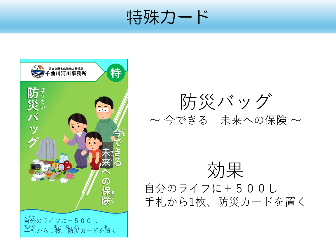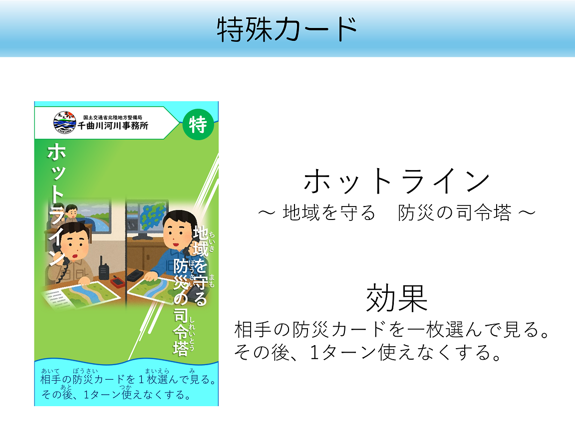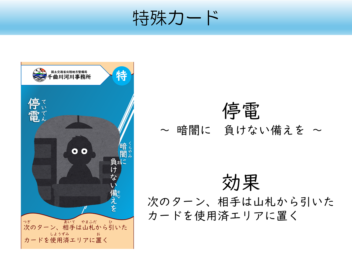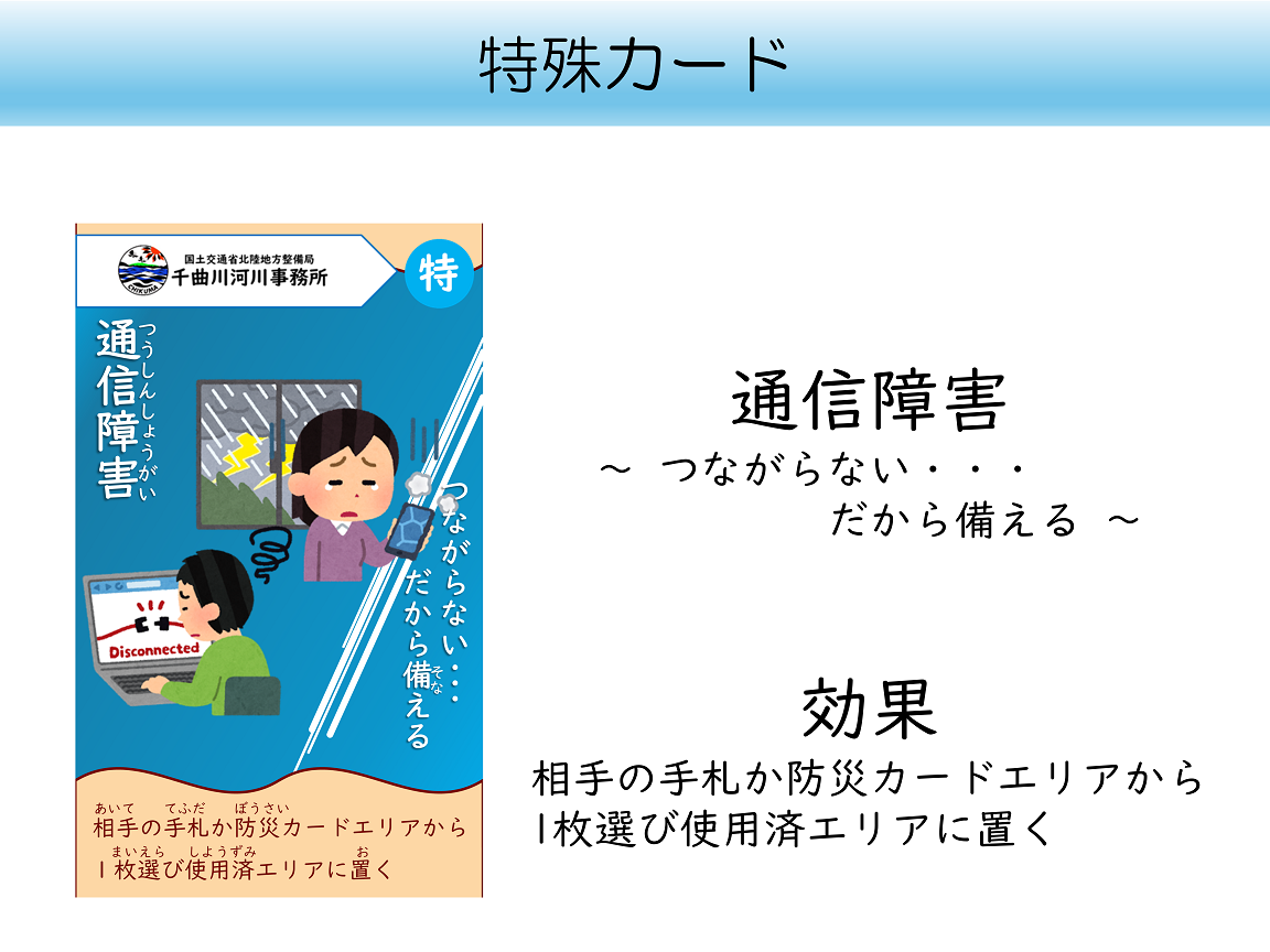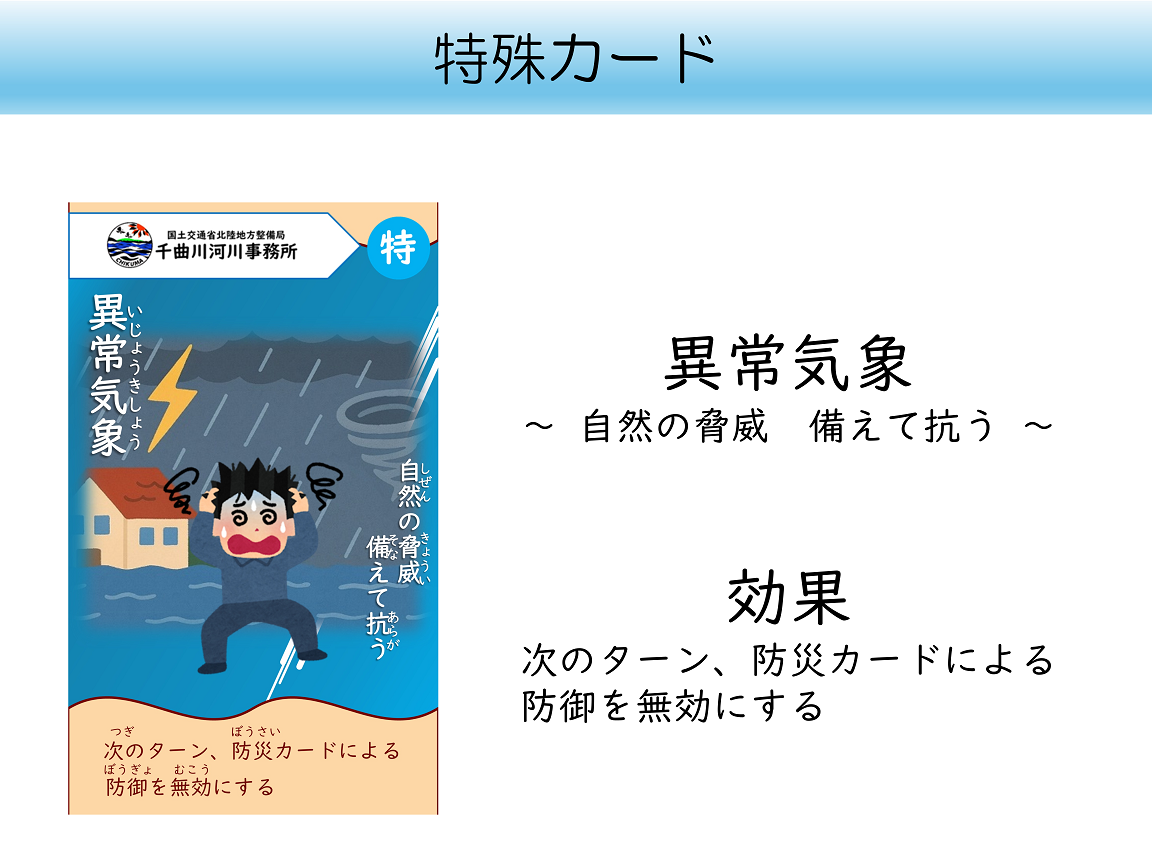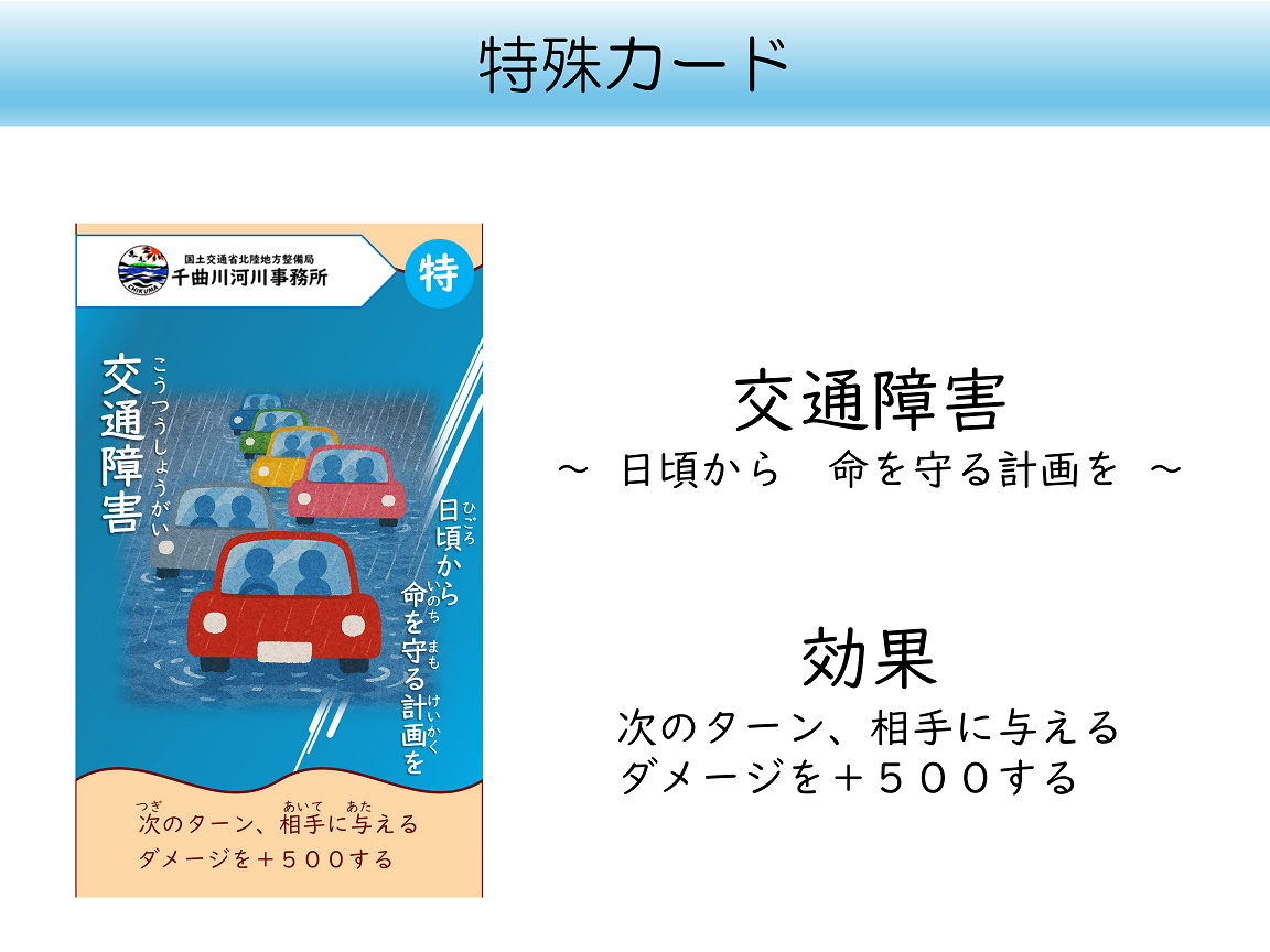 千曲川河川事務所では、出前授業や防災イベント等において、本カードゲームを活用しています。
