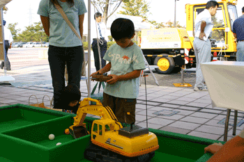その他に、体験学習コーナーを設け、中越地震など過去に起きた地震を体験できる起震車、中越地震で出動した遠隔操縦バックホウの展示・操作体験、水質実 験体験、リサイクル紙を使ったフラワーポット作り、3D土石流体験装置による土石流体験などを行い、行列が出来るほどの賑わいを見せていました。