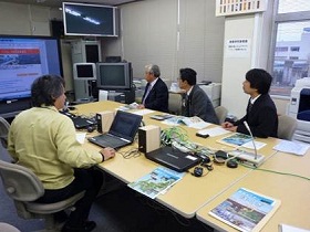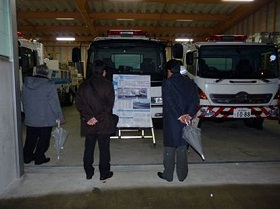実施内容:「災害対策室での施設説明」「災害対策車両見学」