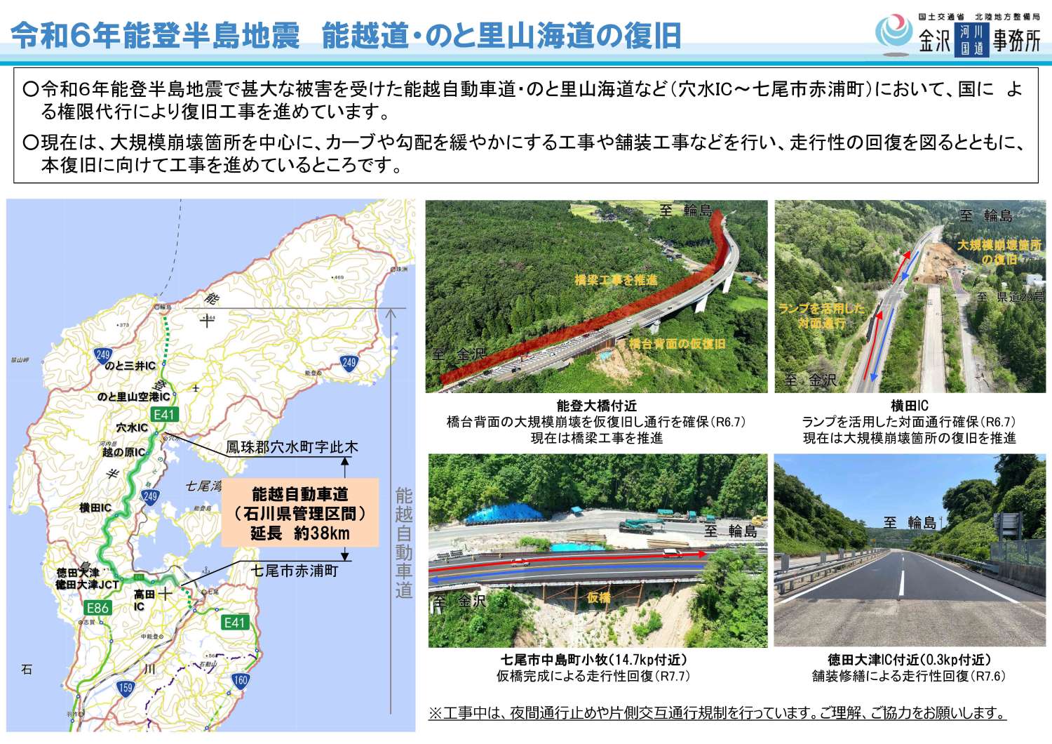 2024.04.23国道470号能越自動車道・のと里山海道 対面通行確保の見通しについて