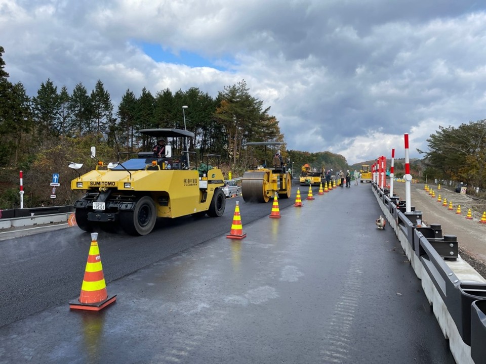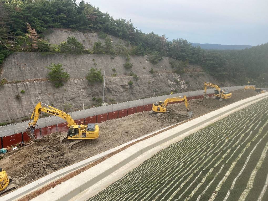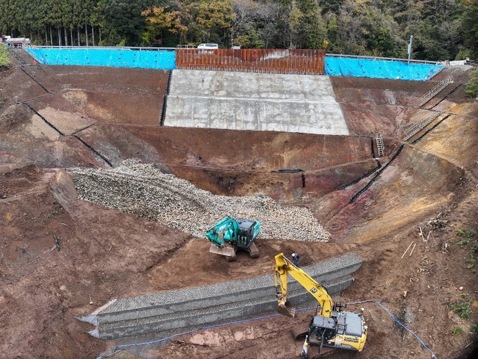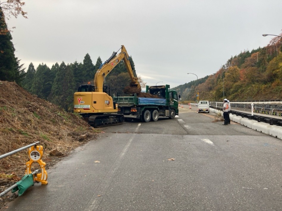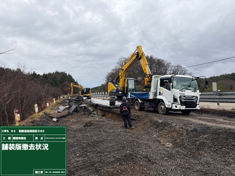 工事進捗状況 現在の作業状況 [金沢河川国道事務所]穴水IC~(仮称)病院西IC 24.6~25.0kpR6 能越道穴水越の原道路復旧その2工事 和田内潜建(株) R6.9.2~R8.3.31 R7.7.9 作業ヤード造成 24.5~25.0kpR6・7 能越道穴水越の原橋梁復旧その2工事 昭和・大豊JV R7.6.1~R8.3.31 【A2+擁壁】 24.1~24.5kpR6 能越道穴水越の原橋梁復旧その1工事 三井住友建設・姥浦建設JV R6.11.13~ R8.3.31 【本官】【P8~P11】 R7.11.12 仮設土留め工 23.4~24.2kpR6 能越道穴水越の原道路復旧その1工事 真柄建設(株) R6.9.2~ R8.3.31 R7.11.20 水抜ボーリング工 21.2~23.4kpR6 能越道道路復旧その3工事 昭和・大豊JV R7.5.1~R8.2.27 R7.12.17 舗装版撤去 20.8~21.2kpR6 能越道越の原横田道路復旧その8工事 南建設(株) R6.7.25~R8.3.31 R7.8.6 矢板圧入状況 18.7~19.2kpR6 能越道越の原横田道路復旧その7工事 小倉建設(株) R6.7.25~R8.3.31 R7.6.12 落石防護柵工 17.0~20.8kpR6 能越道道路復旧その2工事 昭和・大豊JV R7.5.1~R8.2.27 R7.11.19 舗装工 16.1~17.0kpR6 能越道越の原横田道路復旧その6工事 真柄建設(株) R6.9.2~R8.3.31 R7.12.18 盛土復旧状況 16.1~16.5kpR6 能越道越の原横田道路復旧その10工事 川田・新井JV R7.7.1~R8.2.27 R7.12.9 仮橋工 15.0~16.1kpR6 能越道越の原横田道路復旧その5工事 南建設(株) R6.7.17~R8.3.31 R7.10.22 岩掘削 14.3~15.0kpR6 能越道越の原横田道路復旧その4工事 石川建設工業(株) R6.7.11~R8.3.31 R7.6.19 舗装版取壊し工 13.5~14.3kpR6 能越道越の原横田道路復旧その3工事 大幸建設(株) R6.8.1~R8.3.31 R7.12.19 切回し道路施工 11.3~12.5kpR6 能越道越の原横田道路復旧その2工事 小倉・加賀田JV R6.11.1~R8.3.31 【本官】 R7.12.22 路体敷均し 10.8~11.3kpR6 能越道越の原横田道路復旧その1工事 (株)豊蔵組 R6.7.16~R8.3.31 R7.12.2 土砂等運搬 9.8~10.8kpR6 能越道横田徳田大津道路復旧その6工事 宮下・植木JV R6.11.1~R8.3.31 【本官】 R7.7.23 掘削工・土砂運搬 4.9~5.9kpR6 能越道横田徳田大津道路復旧その4工事 石田・若築JV R6.10.1~R8.3.31 R7.11.25 押さえ盛土工 1.2~6.5kpR6 能越道道路復旧その1工事 (株)小山組 R7.6.2~R8.2.27 R7.9.23 伐採工 2.2~3.0kpR6 能越道横田徳田大津道路復旧その3工事 石川建設工業(株) R6.7.11~R8.3.31 R7.12.2 舗装工・区画線工 1.5~2.2kpR6 能越道横田徳田大津道路復旧その2工事 加賀建設(株) R6.7.11~R8.3.31 R7.12.16 防草コンクリート打設状況 0.8~1.5kpR6 能越道横田徳田大津道路復旧その1工事 大幸建設(株) R6.8.1~R8.3.31 R7.12.19 掘削工 11.3~26.7kpR6 能越道越の原横田舗装復旧工事 前田道路(株) R6.11.25~R8.1.30 R7.7.11 基層工 0.8~11.3kpR6 能越道横田徳田大津舗装復旧工事 北川ヒューテック(株) R6.7.29~R8.1.30 R7.6.27 舗装修繕工 R6 能越道橋梁補修工事 (株)丸西組 R7.4.1~R8.2.27 R7.11.24 橋梁補修工 R6 能越道徳田大津高田舗装復旧工事 (株)佐藤渡辺 R6.11.25~R8.1.30 R7.10.7 舗装工 R6 能越道高田舗装復旧工事 福田道路(株) R6.7.29~R8.1.30 R7.9.11 舗装工 R6 能越道徳田大津高田道路復旧工事 (株) 向出組 R7.6.30~R8.2.27 アーカイブPhoto Archive 過去の作業状況はこちら