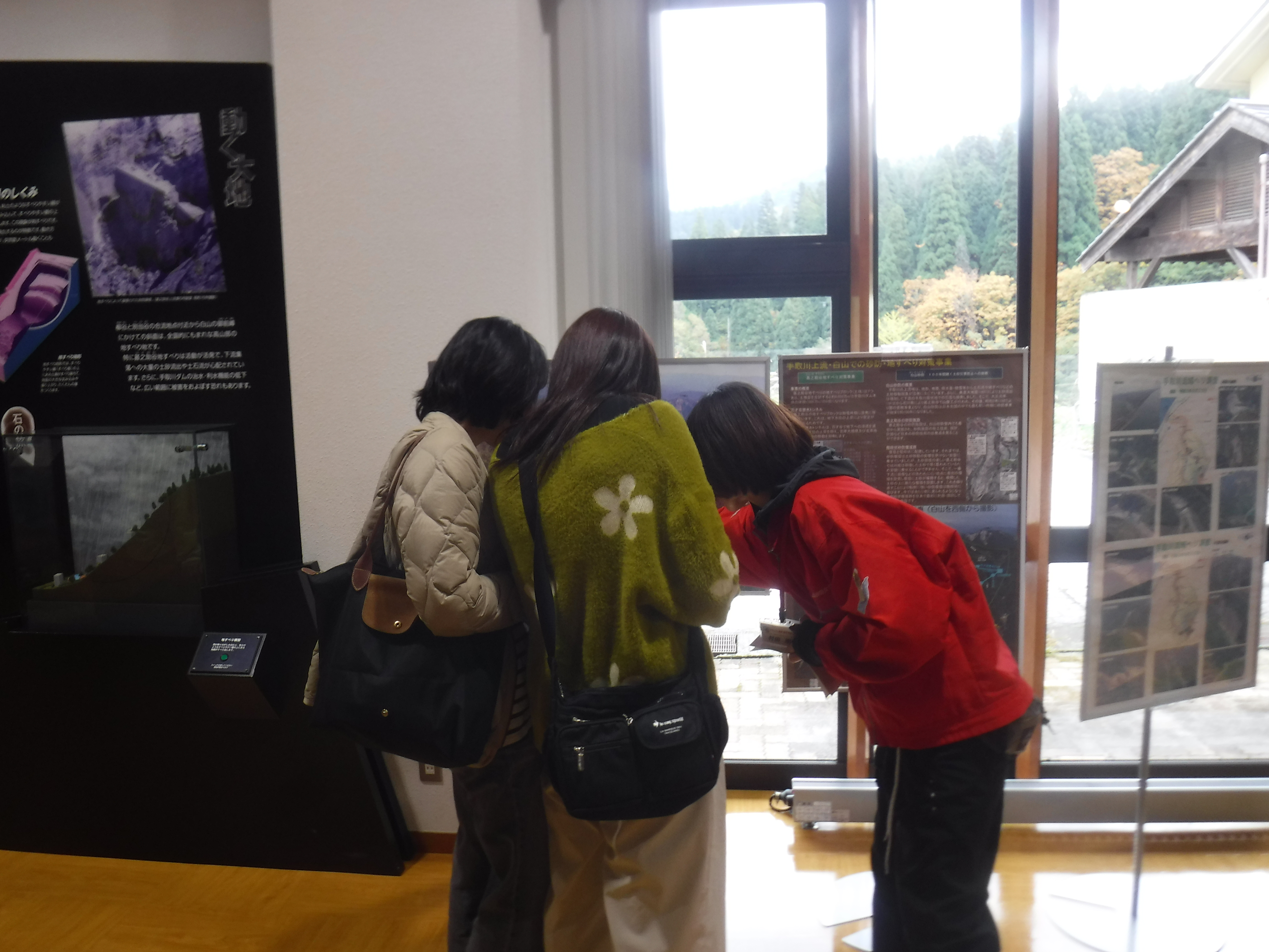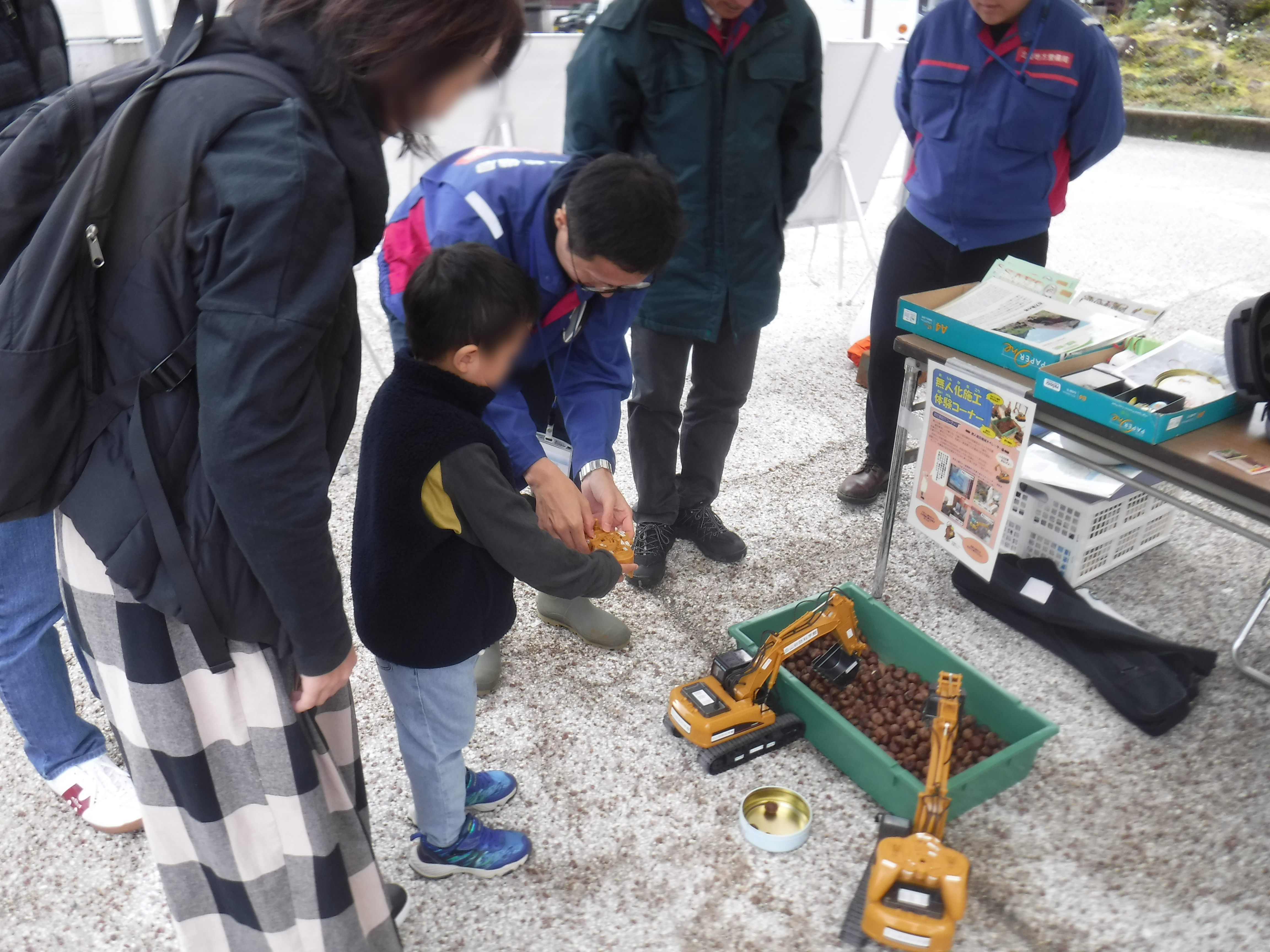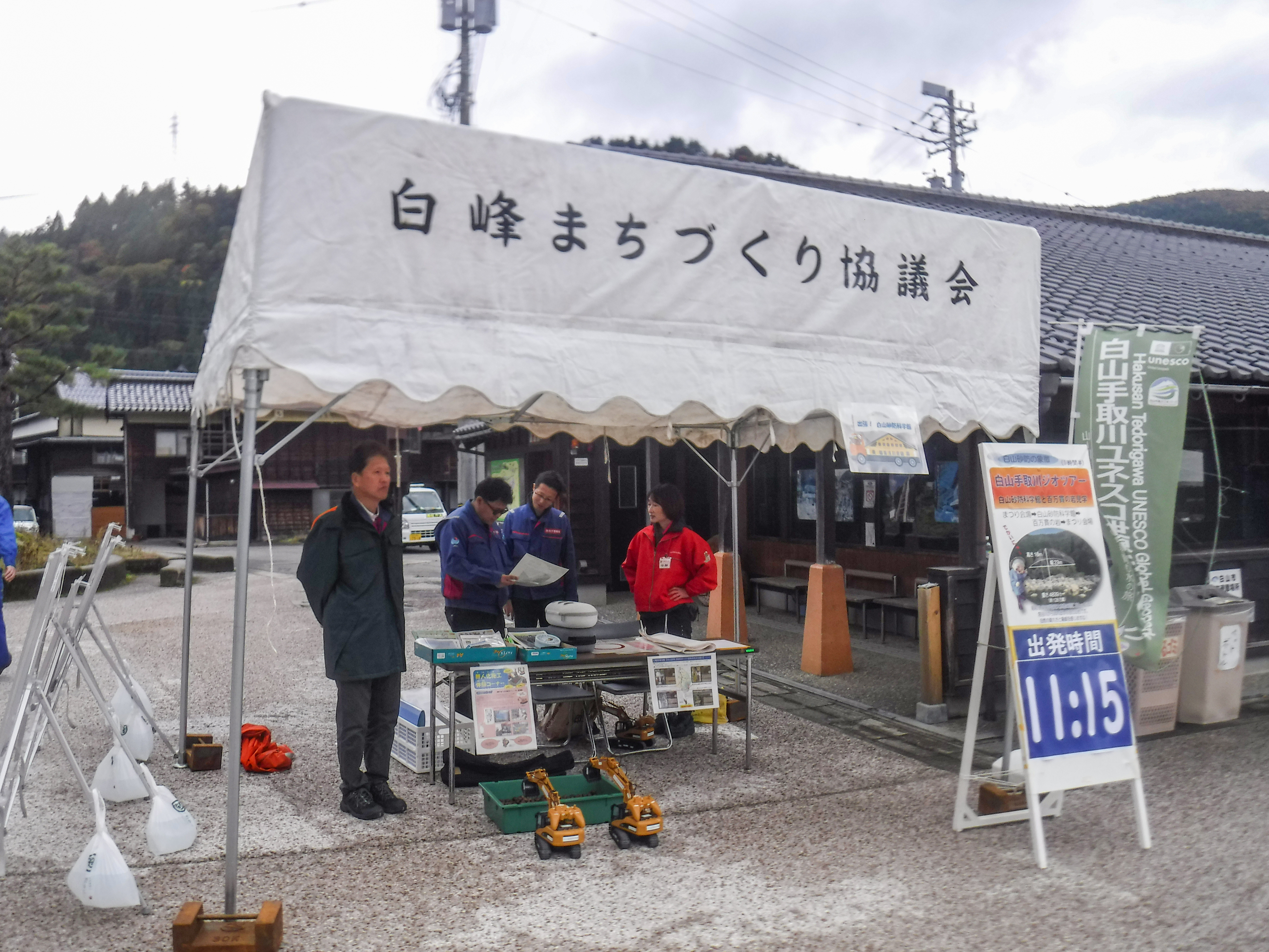 11月2日、白峰温泉まつりに特派員として参加しました。会場では「白山手取川ジオパークツアー」に付き添いました。ツアーには11名の方が参加され、砂防科学館の見学や百万貫の岩を訪れました。ちょうど紅葉が見頃で、色付いた山々を背景に写真を撮る方も多く、秋の白峰の自然を満喫していただけたようでした。 会場のブースでは無人化施工体験のラジコンホウにたくさんの子どもたちが興味を持ち、楽しそうに操作していました。○×クイズは午前と午後行い、午後は雨が心配でしたが、無事に実施することができました。 今年は新しい取り組みとしてVRゴーグルを使って甚之助谷の風景を体験してもらいました。お試しの段階で改善の余地はありますが大人の方にも楽しんでいただけました。小さな子供がら走り出してしまう場面もあり安全面の工夫が必要だと感じました。 会場では地元の特産品を使った飲食や物販もあり、最後は栃餅の振る舞い餅つきで賑やかに締めくくられました。地域の方々とふれあいながら、砂防の大切さを伝える貴重な一日となりました。