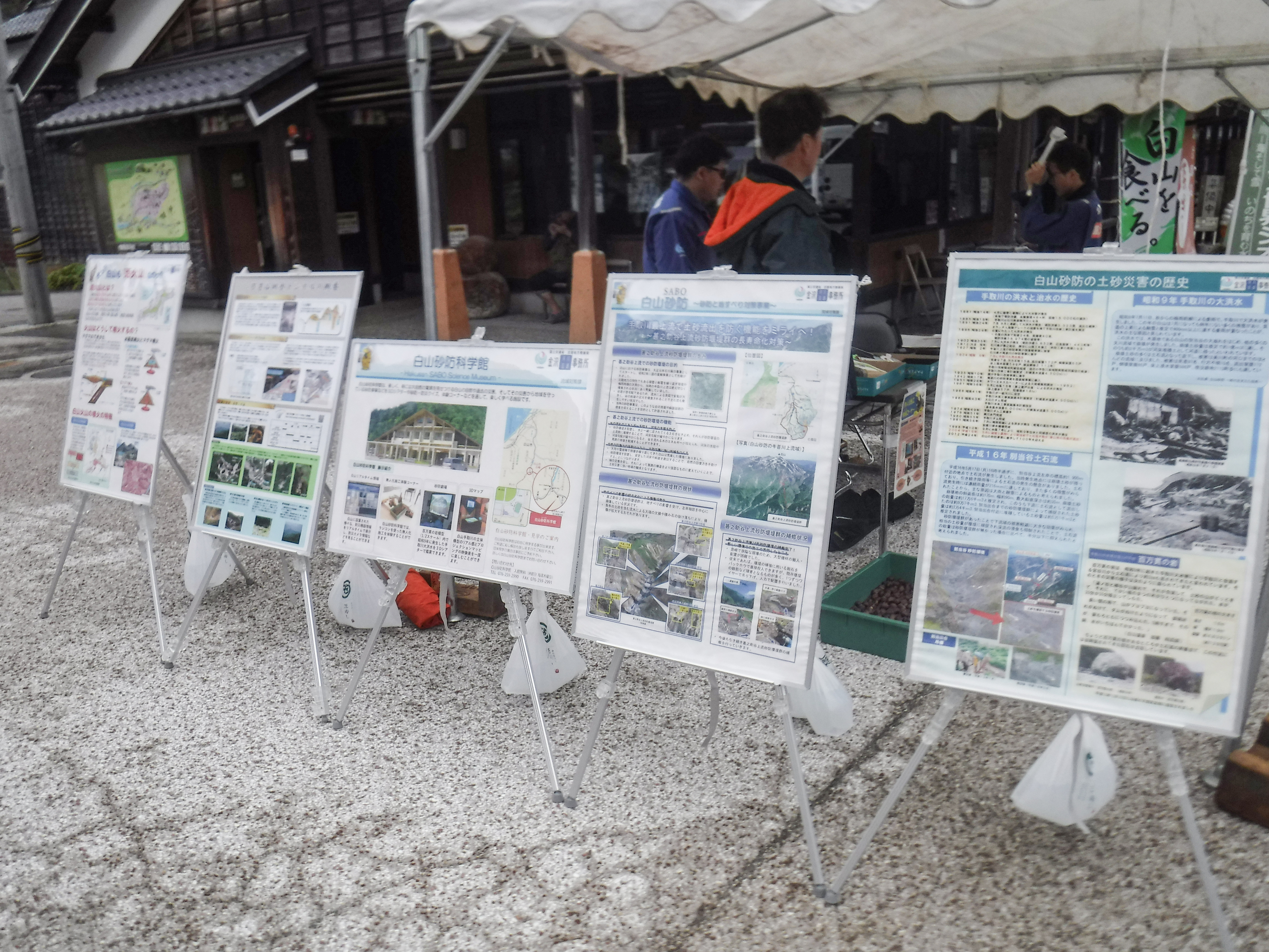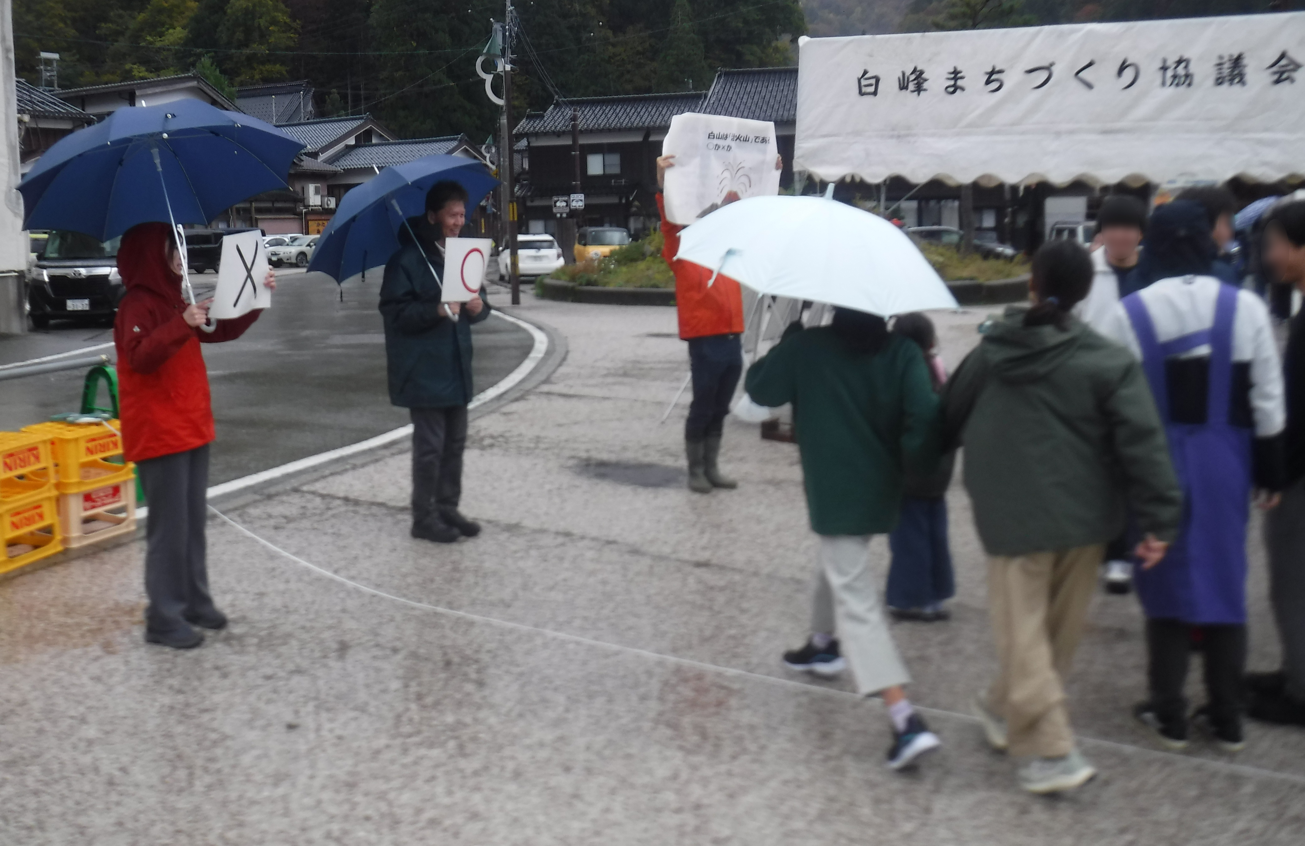 また、白山白峰温泉まつりの催しの1つとして「白山砂防○×クイズ」を開催しました。雨の中ではありましたが、お年寄りからお子様までたくさんの方にご参加いただきました。クイズを楽しんでいただきながら、砂防についての広報活動をすることができました。