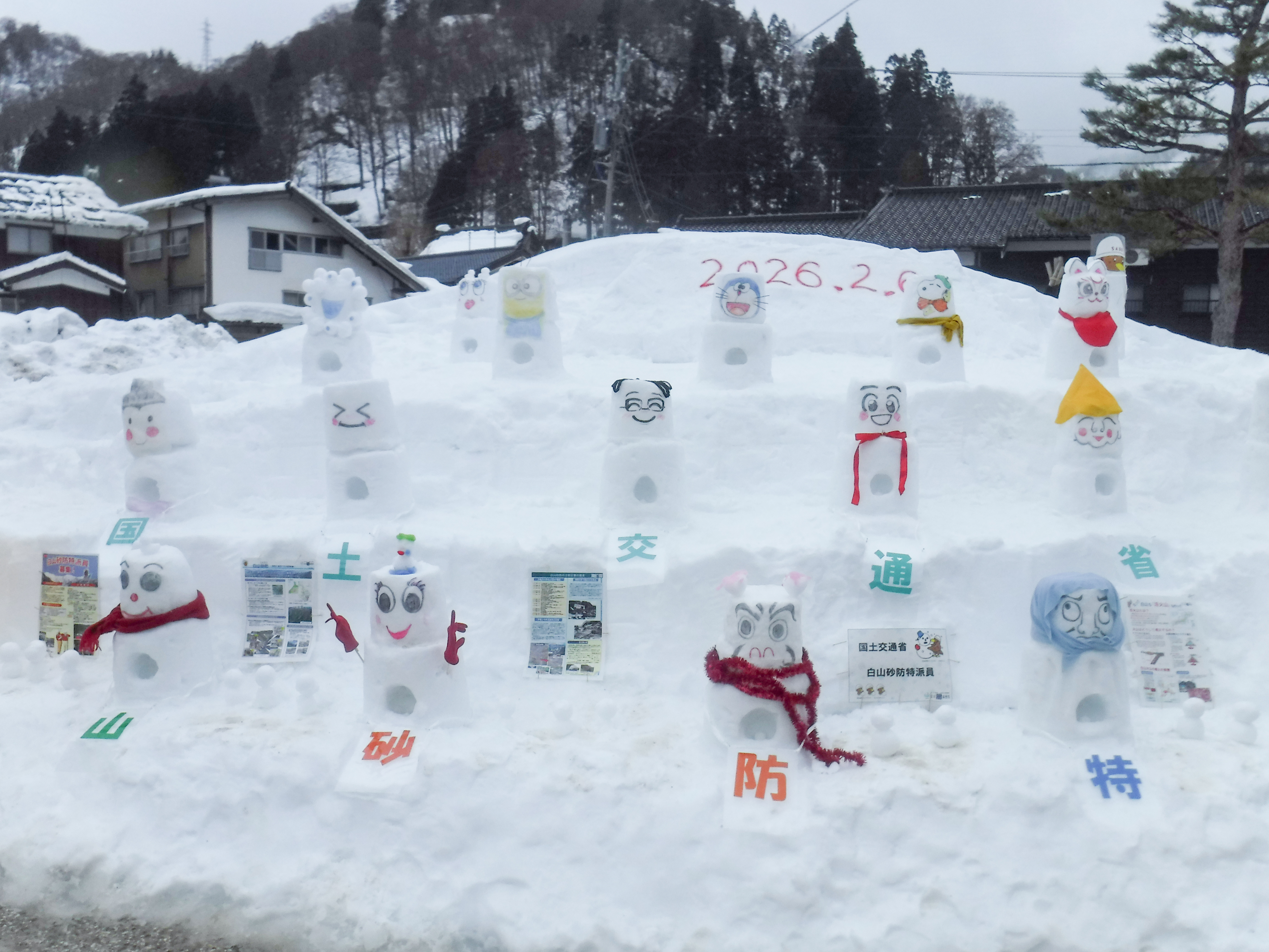 第7回活動は、「白峰雪だるままつり2026」に参加し、雪だるま製作を通じて地域の方々との交流を図るとともに、PR活動を行ってきました。白山砂防特派員全員で作り上げた雪だるま達はどれも力作で、表情豊か、個性溢れる作品となりました!