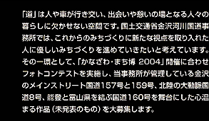 - 国土交通省金沢河川国道事務所が管理する国道(8号・157号・159号・160号)や橋(犀川大橋・浅野川大橋)を舞台にした四季の風景、自然、祭り、行事、暮らし、人など