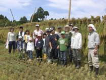 子供会の田んぼのイネも順調に育ち、9月18日(土)に稲刈りを行いました。田植えと違ってイネを刈るのは結構難しい作業でしたが、子供たちは頑張って稲刈りを行いました。イネ運びをする人や、稲上げを手伝う人、お茶出しをする人など、自然に役割分担ができて、みんなで最後まで頑張りました。