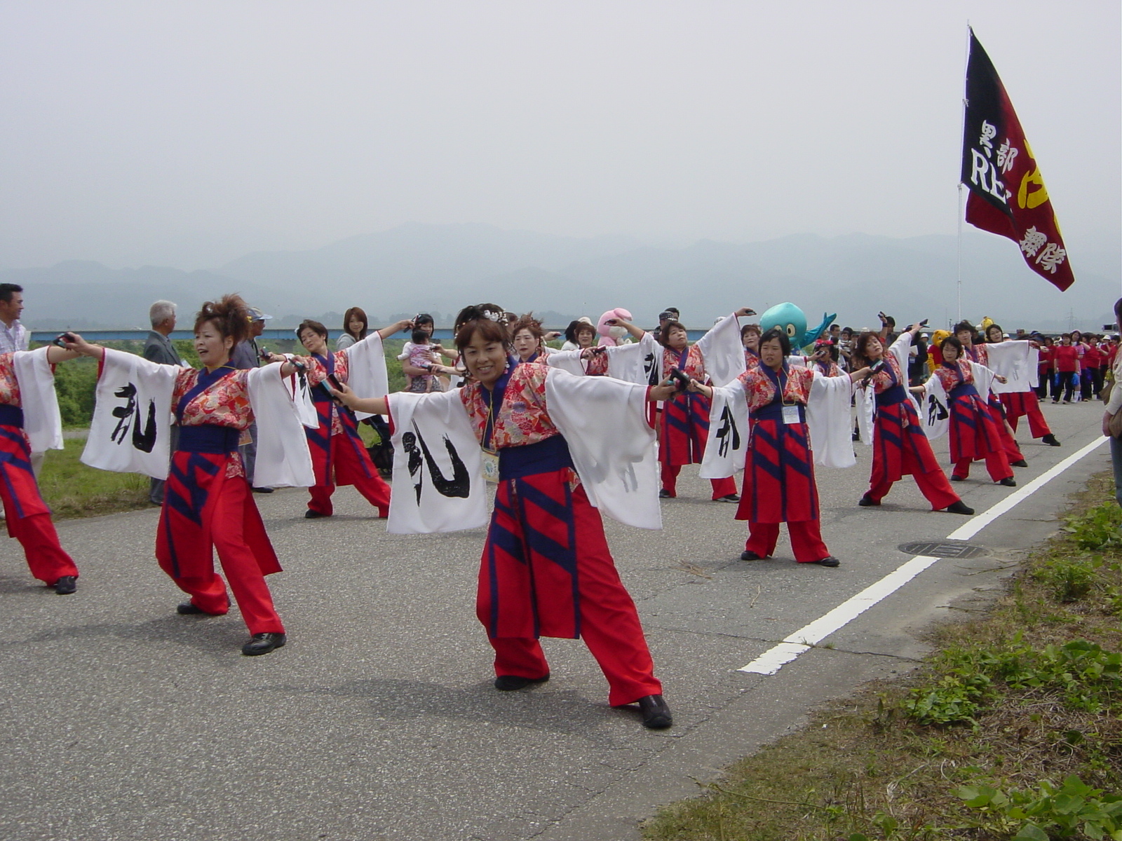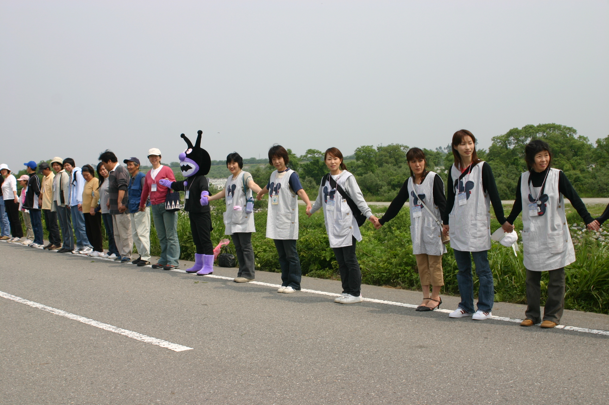 6月4日(日)、新・黒部市の誕生を祝い、黒部川左岸に沿って市民が手をつなぐ 「スマイルチェーン」が行われました。4980人が参加し、下立地区から若栗地区までの約5kmにわたる“笑顔の鎖”を完成させました。