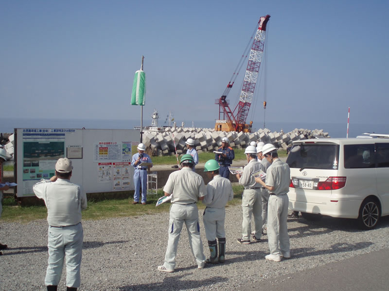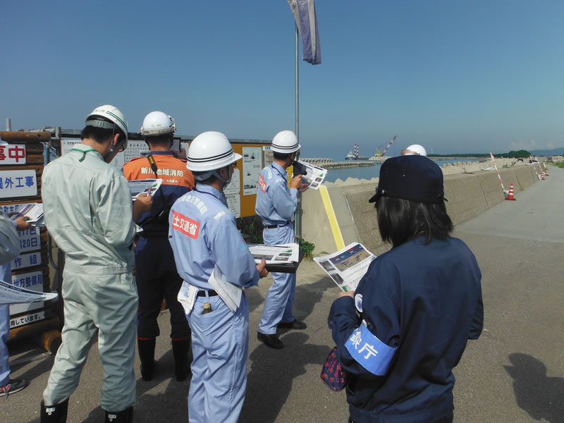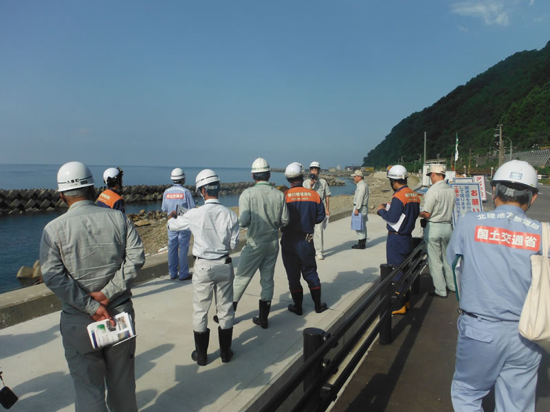 当日は、下新川海岸水防連絡会関係者22名が参加し、今年度整備を進めている入善町五十里地先や入善町吉原地先、富山県が実施している朝日町元屋敷地先の工事施工箇所を視察しました。