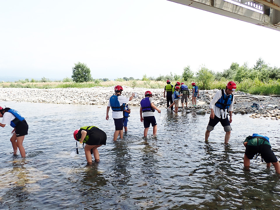 黒部川では、黒部市内の小学4〜6年生から成る「くろべ水の少年団」が、7月6日(日)に黒部川下流部(下新川郡入善町高畠地先)で、7月26日(土)に中流部(黒部市内山地先)で調査を実施しました。