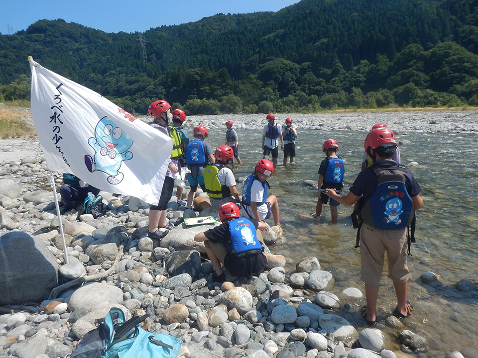 黒部川でくろべ水の少年団が「水生生物調査」を行いました。