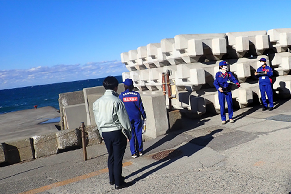 現地視察は、高波が本格化する冬季前に海岸の危険箇所を把握するため実施しています。