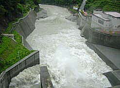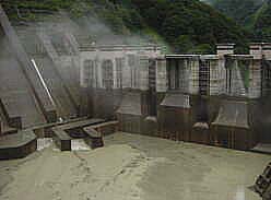 水位低下中であった宇奈月ダムH13年6月21日AM5:00自然流下