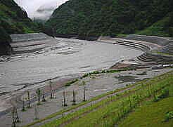 上流の出し平ダムが平成3年に始めて排砂を行ってから今回で9回目の排砂となります。平成3年の第1回の排砂は、出し平ダム(関西電力)が昭和60年7月に完成してから6年間ためた土砂を流したため土砂が変質し環境問題がクローズアップされた為に、この経験を活かされて毎年、土砂が変質しない先に自然に近い形で排砂を実施してきています。