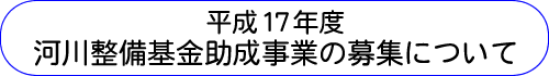 平成17年度河川整備基金助成事業の募集要項が決定し、募集が開始されました。(申請受付は1月末日(必着)です。