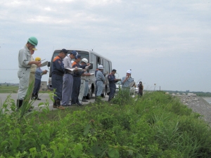 特に、6月からは出水期※1を迎え、洪水も起こりやすくなります。このため洪水被害を未然に防ぐために河川管理者である黒部河川事務所と水防管理団体である関係市町等が合同で重要水防箇所※2や水防倉庫※3等を再点検し、実際に洪水が起きたときに水防活動が迅速に行われることを目的として「黒部川合同河川巡視」を実施します。 |