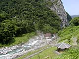 小滝護岸工 地すべりを抑えヒスイ峡を守っている護岸のはたらきや、それが景観に配慮したものであることを学習しました。 |