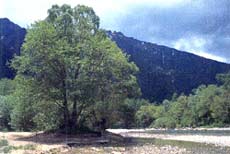 ケショウヤナギ。信州および北海道の一部に生育するヤナギで氷河時代から取り残された植物と言われています。若木の肌は白樺のように白くその小枝は晩秋から早春にかけて紅色で美しく化粧をしたようだというのでこの名がつけられたと言います。砂地を好んで生息し、本州では上高地がその群生地として知られていますが、梓川下流沿いでも群生が見られます。 |