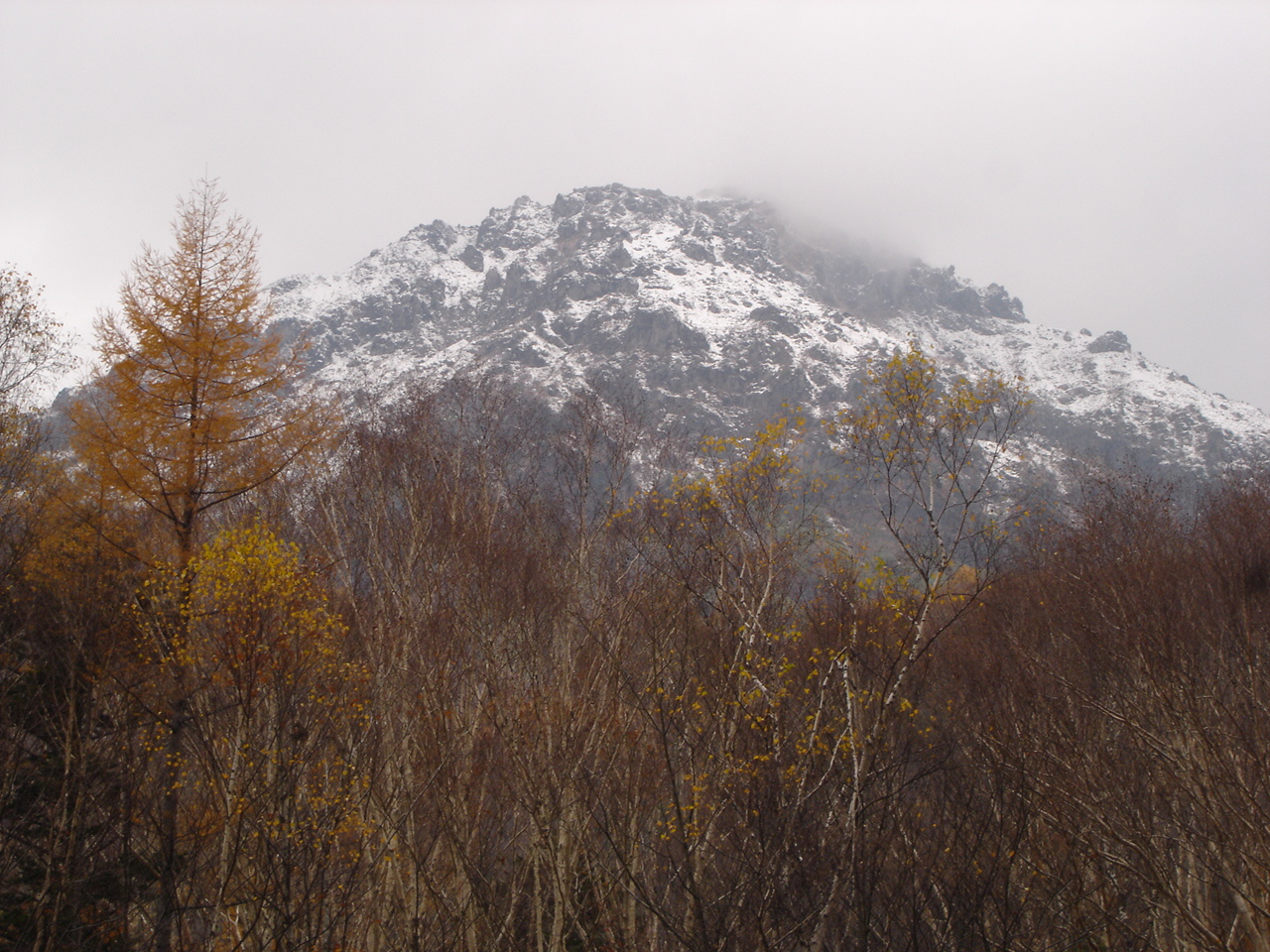 10月の下旬に各地の山々で初冠雪が観測されました。焼岳もその頃に初冠雪が観測されました。写真は10月31日の焼岳です。上高地では、松本市内よりも一足も二足も冬の訪れが早いようです。上高地の砂防工事はこれから本格的に行われます。