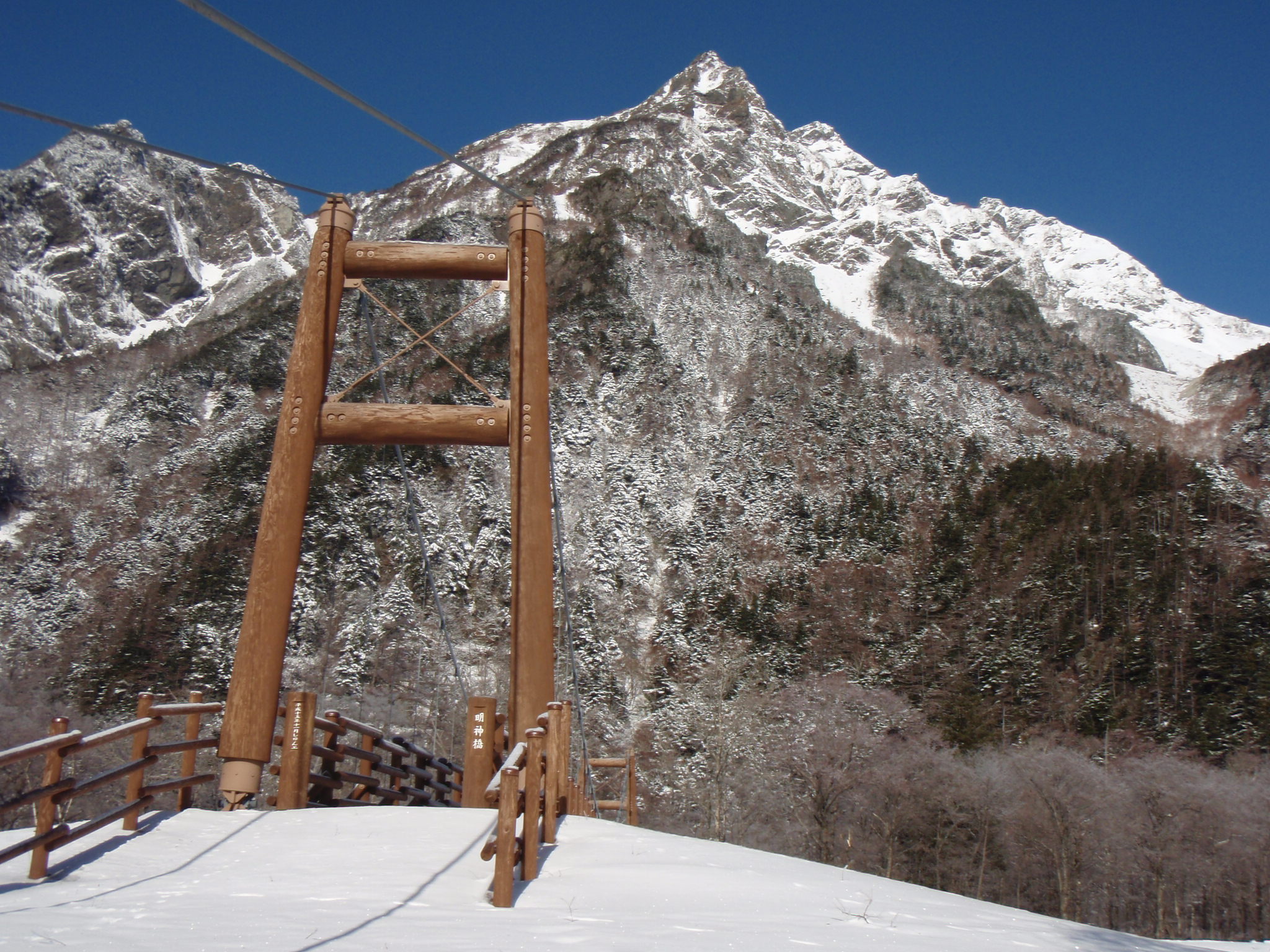 明神橋は河童橋から歩いて1時間くらいのところにあり、景勝地・上高地の中でも景色の良いところとして知られています。