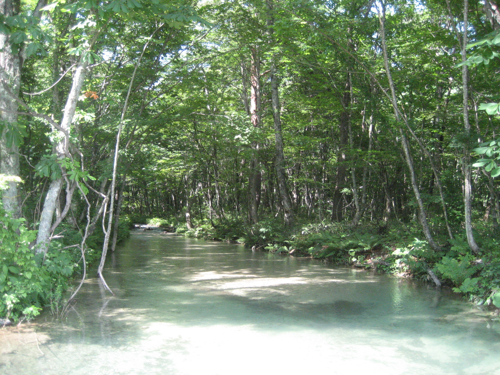 河畔林が繁茂しています。その河畔林の中を涼しげにせせらぎが流れていました。