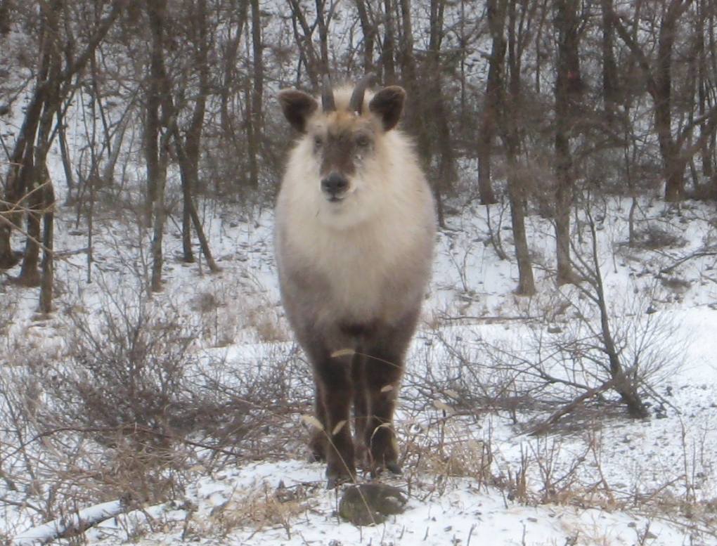 梓川出張所(松本市安曇・大野田)の脇でたたずむカモシカです。7〜8mの距離まで近づいてもじっとしていて逃げようとしませんでした。この付近に住み着いているようで、頻繁に訪れています。
