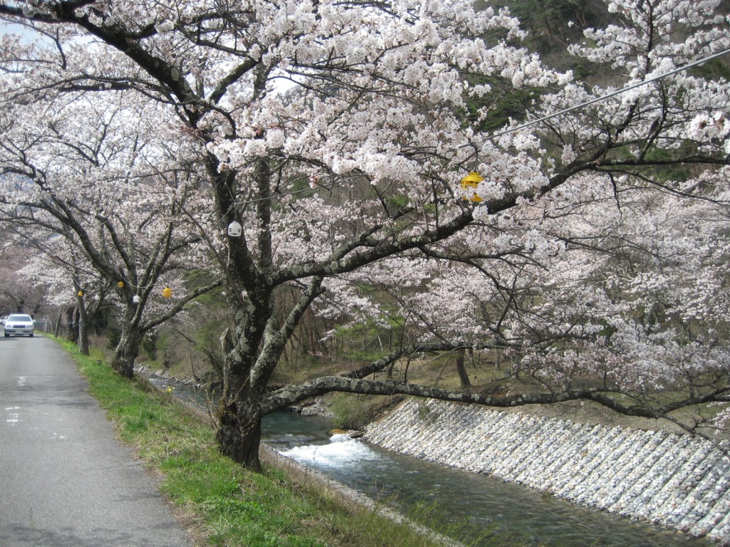 松本市安曇、島々谷川堤防の桜です。この桜は昭和20年に発生した土石流災害の後、植えられました。50年以上経た桜の木は巨木となり鮮やかな花を咲かせています。