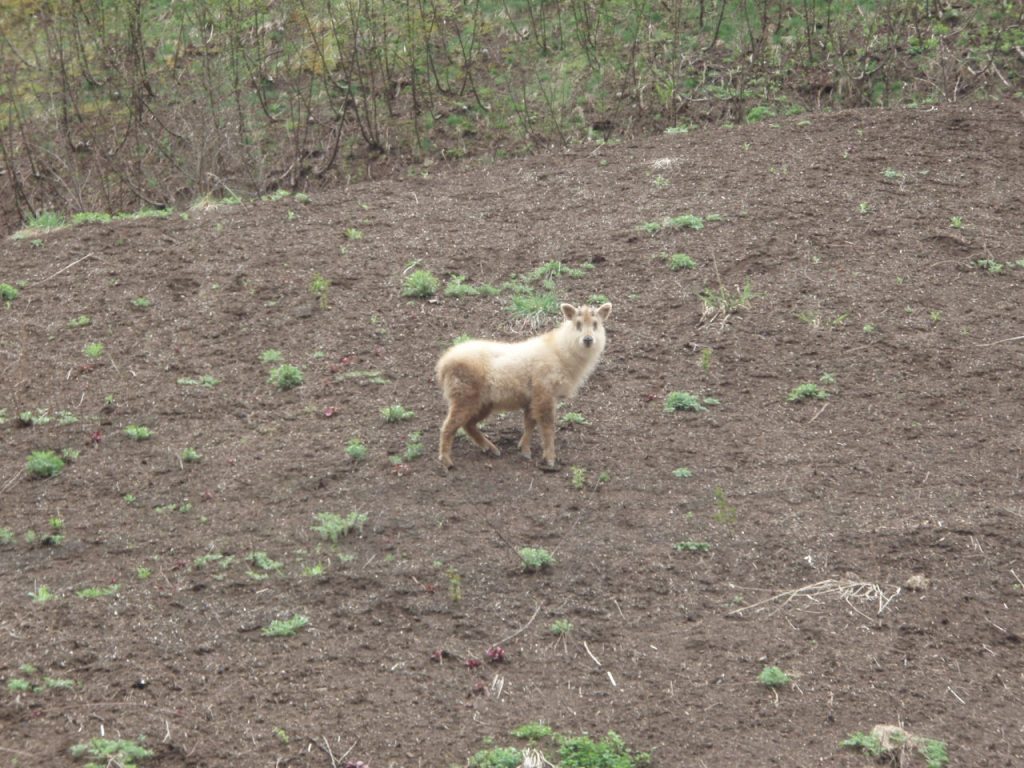 小谷村金山沢に現れたカモシカです。 芽吹きの季節となり食べ物を探しに下りてきたのでしょうか。? 梓川出張所の近くに現れるカモシカ(あずさちゃん?)と比べると体も角も小さいようです。カモシカは長野県のシンボルとして県獣として指定されています。