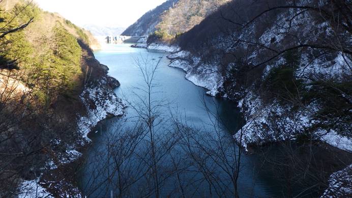 ダム周辺には雪が積もるようになり、日当たりの悪い道路は凍結しています。