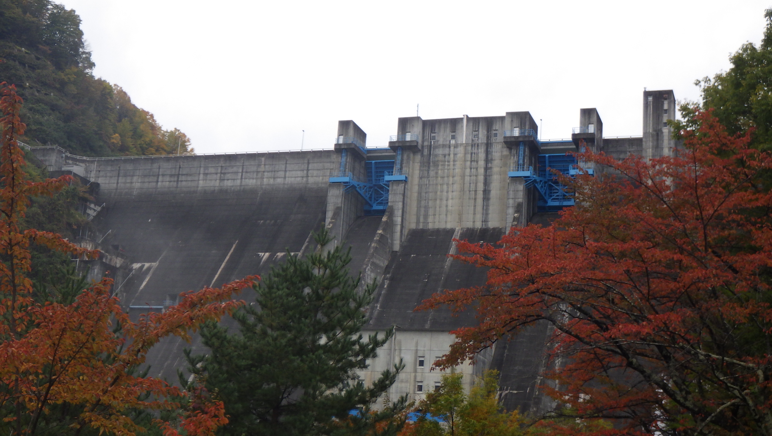 大町ダムでは先週まで見られた紅葉の葉も落ちはじめ、季節が冬へと移ろうとしています。