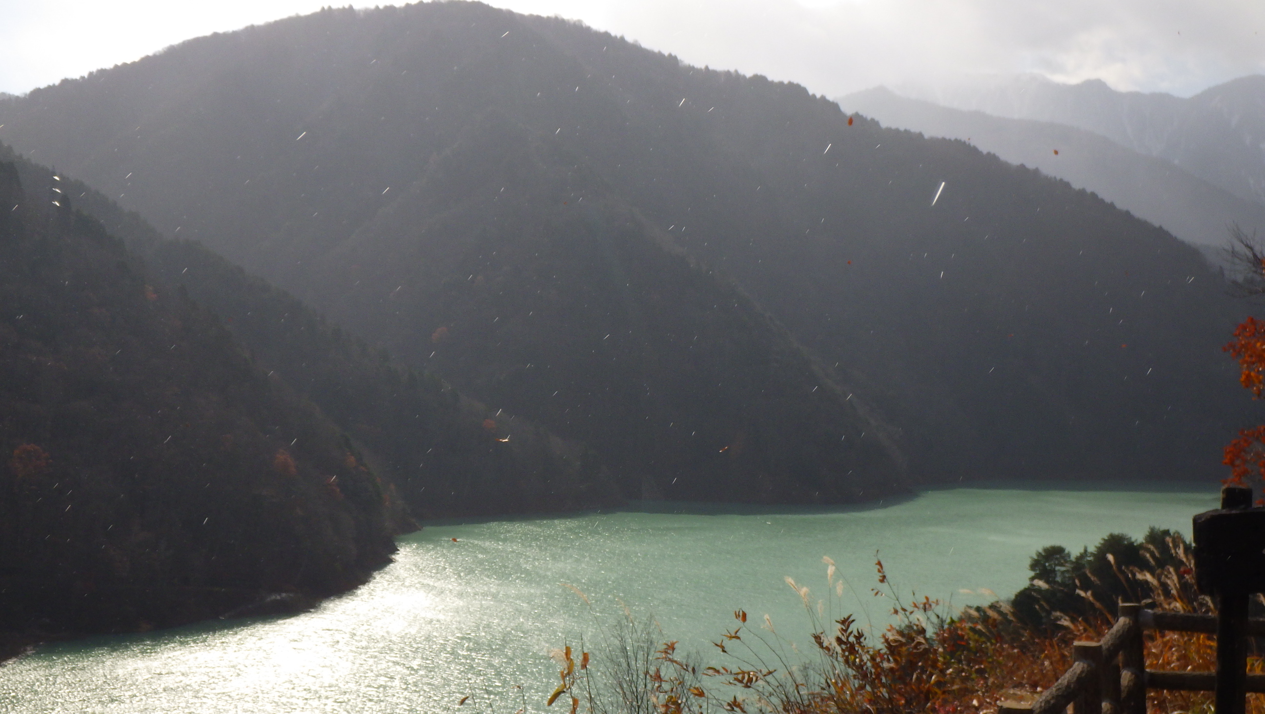 今週の大町ダムでは、最低気温が零度を下回り、初雪が降りました。