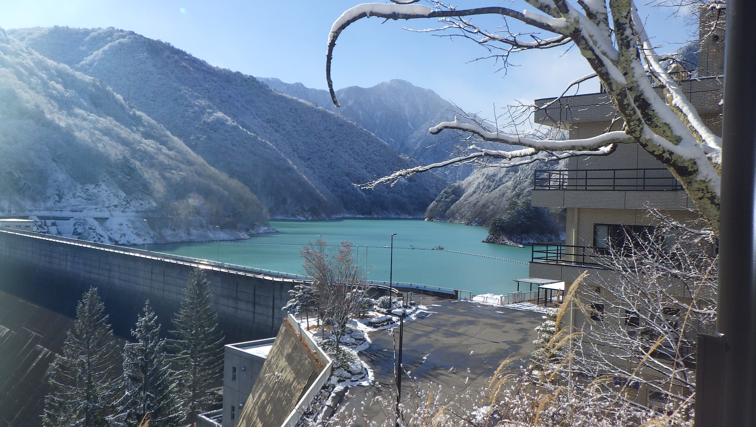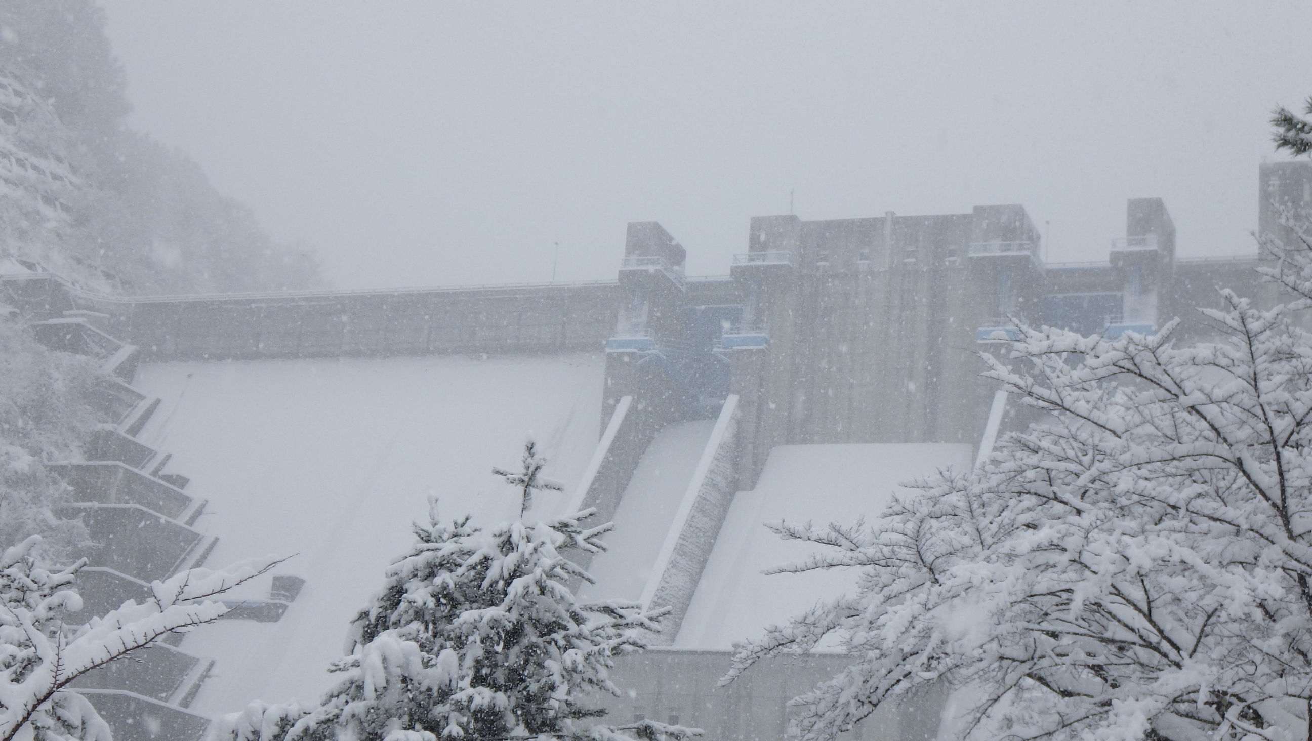 大町ダムにお越しの際は、急な降雪、夜間の凍結に注意願います。