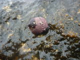 殻高約2.5cm。臍孔は狭く開き、その周囲は白い滑層でぬられている。