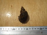 殻高7cm。殻は厚く平滑で、白地に褐色斑列がある。殻口内は淡い青色を帯びた白色。 | |||||||||