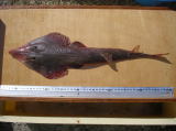 吻は三角形状であまり尖らない。背面は黄褐色で暗茶褐色の小斑点がある。