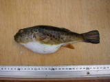 体長25cm。皮膚の表面をいぼ状の突起がおおう。体背方は淡褐色で黒色斑が散在する。