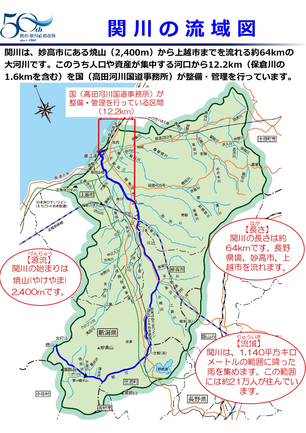 映像と写真でみる河川と道路 河川〔関川・姫川〕 動画〈YouTube〉 高田平野を育む関川(07:55) 清流姫川(08:55) 写真 関川・保倉川・治水のむかし・いま 写真でみる昔の姫川 空から眺める関川・姫川 河川の歴史 関川の歴史と治水 姫川の歴史と治水 川と城と町のなりたち