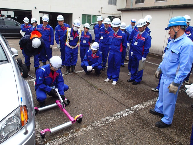 まず、防災エキスパートと職員が講師となって、災対法に基づく車両移動についての座学講義があり、その後、実際に車両移動装置を操作した車両移動の実働訓練を実施しました。