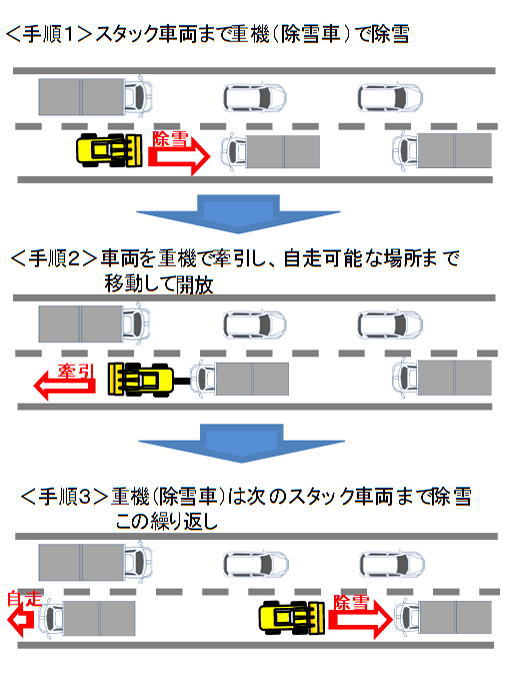 これにより、放置車両や立ち往生車両等が、緊急通行車両の通行や災害応急対策の実施に著しい支障となっていて、道路の通行を確保するために緊急の必要があるときは、道路管理者自らが、支障となっている車両等を移動することができるようになりました。