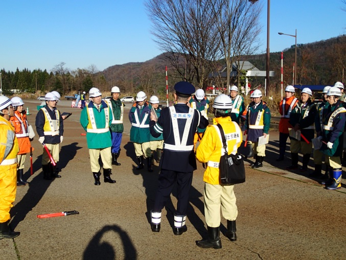 12月7日、国道18号上越市中郷区江口地先の江口道路ステーションで車両誘導訓練を行いました。