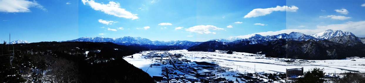 そんな中ではありますが、かねてより姫川を中心に糸魚川をとりまく雄大な冬の山々を撮影したいと考えていましたが、中々晴れ間が出なかったり、晴れていても山々に雲がかかっていたりチャンスに恵まれず、2月中旬にようやく左に鉾ヶ岳、中央に雨飾山、右に黒姫山を望む写真を撮影してきました。(写真−1参照)