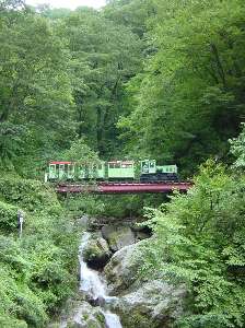 延長18km、標高差640mを約1時間45分で結び、砂防工事に関わる人たちや工事用の道具、材料などを運んでいます。全線にスイッチバックが計38段(H30.4現在)あり樺平の標高差200mを一気に登る連続18段のスイッチバックは世界でも類を見ないものです。