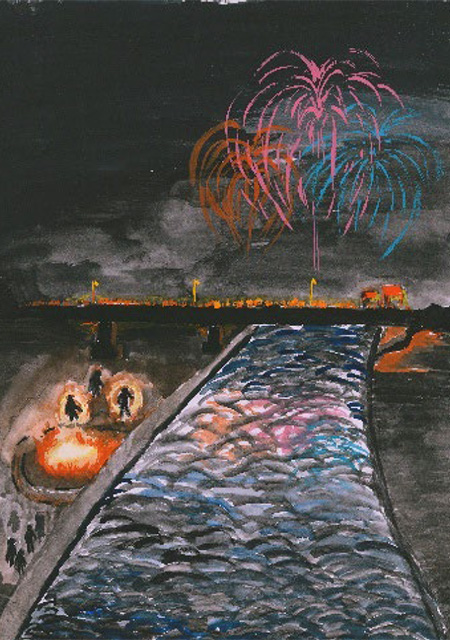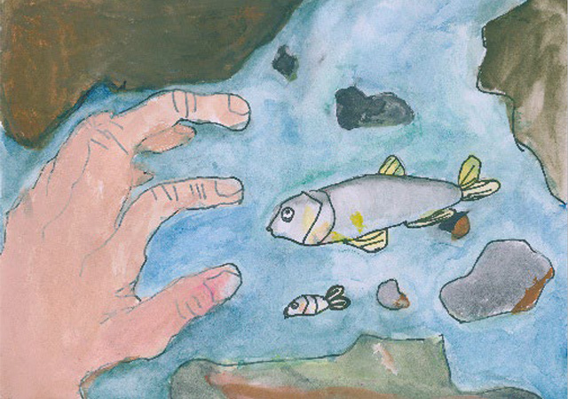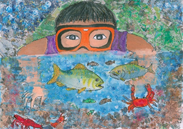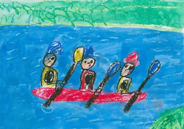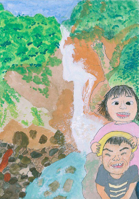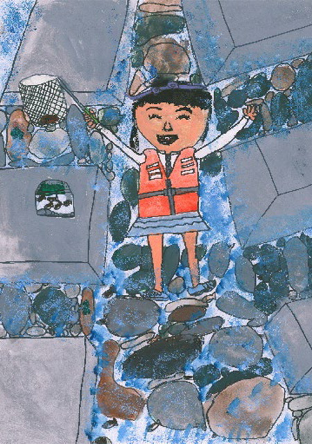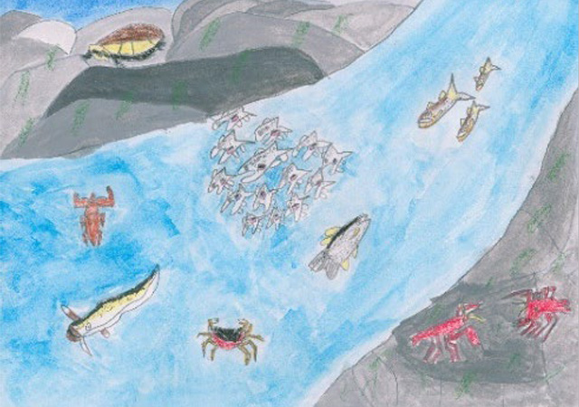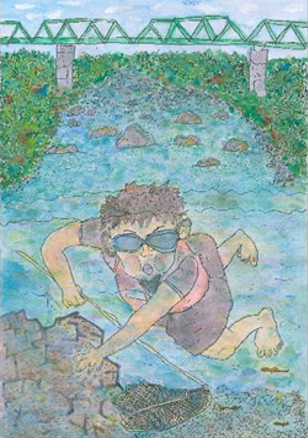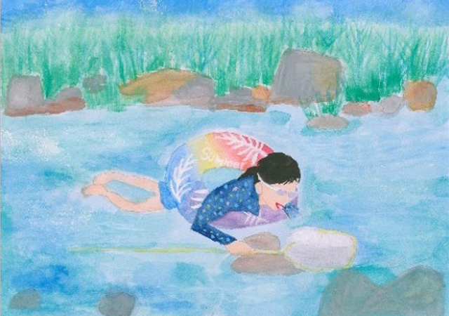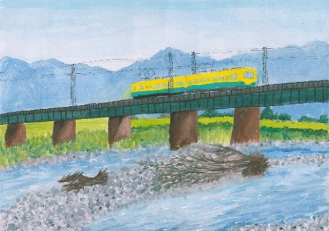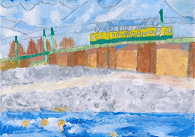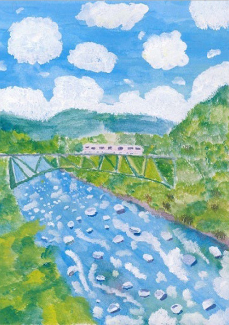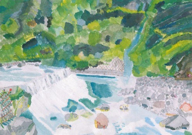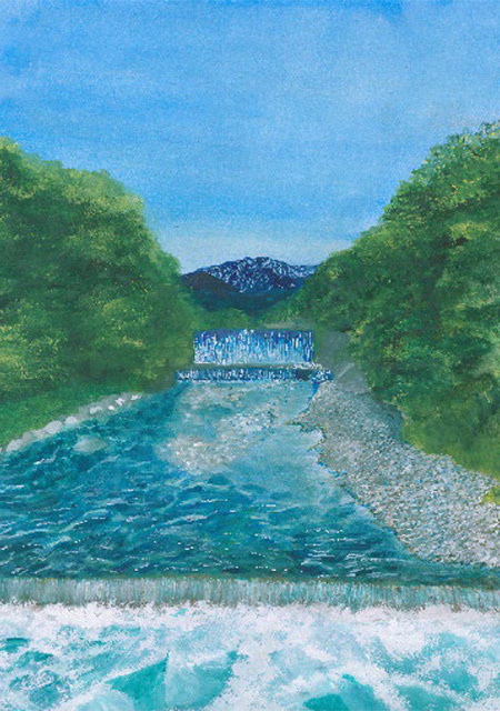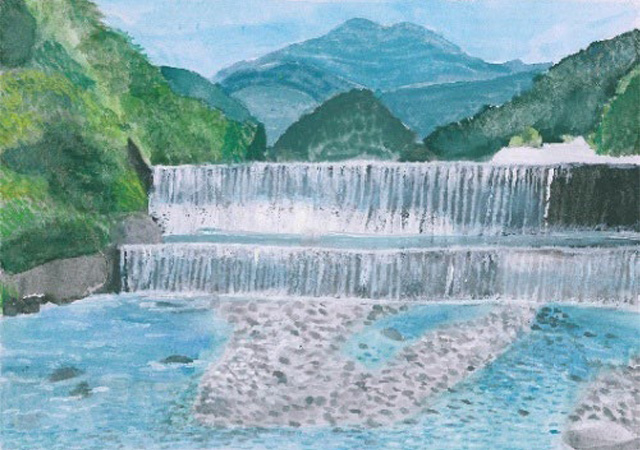 川と親しむ姿、思い出に残った川遊びや風景、暮らしのなかの川、川にある砂防施設やダム、川の中で行っている工事の様子など、「ふるさと富山の川」をテーマとして1枚の絵に表現して頂きました。