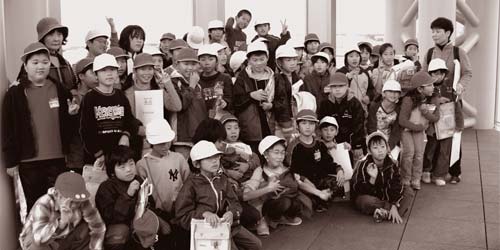 信濃川大河津資料館を見学する分水小学校の児童たち |