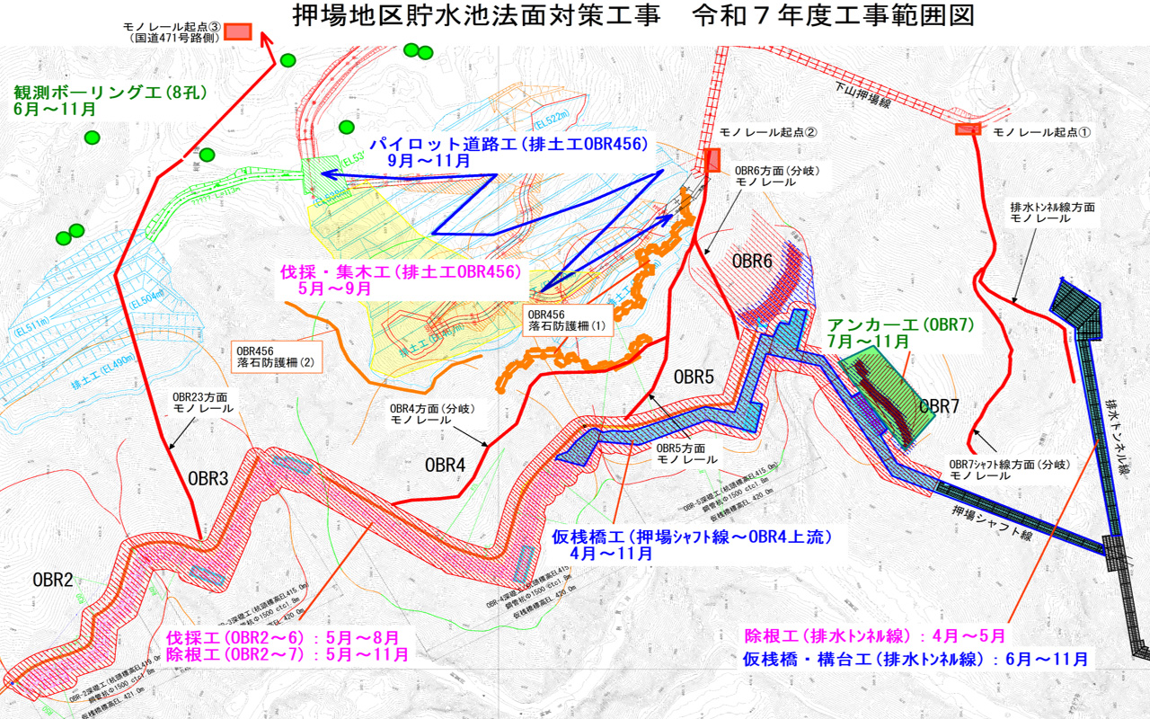 押場地区貯水池法面対策(第1期)工事(令和7年度利賀ダム工事情報)