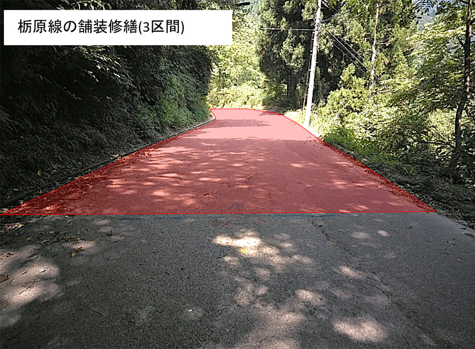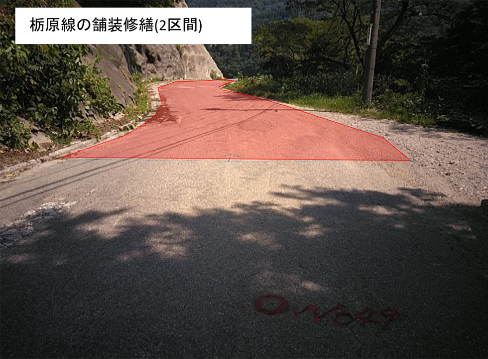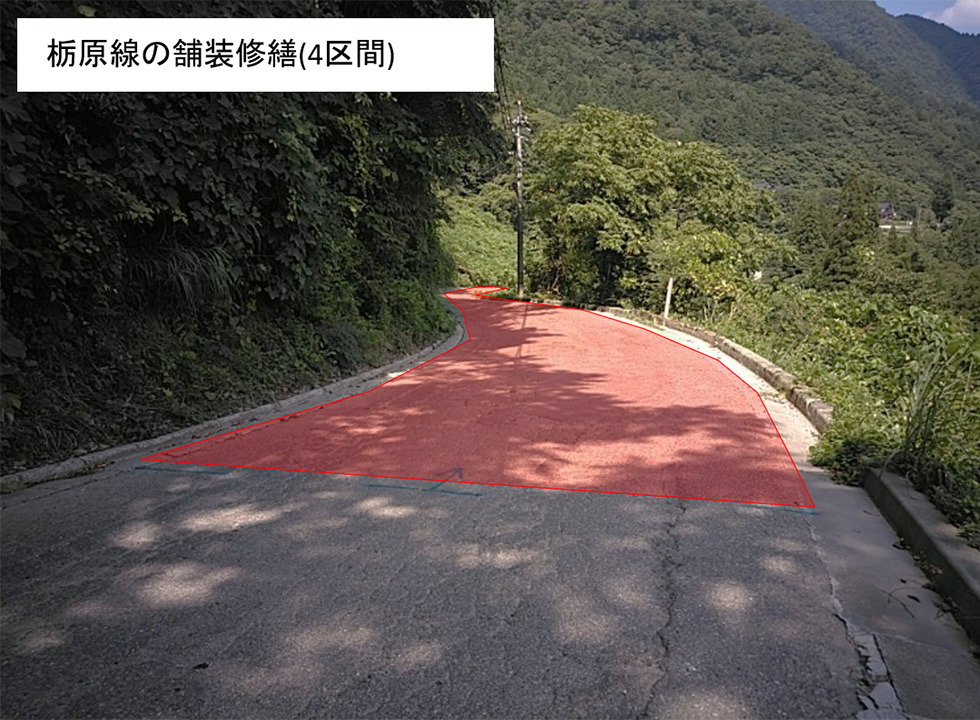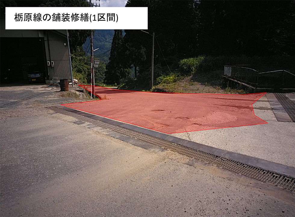 9月初旬より栃原線の舗装が傷んでいる箇所の舗装打ち換え工事を行います。