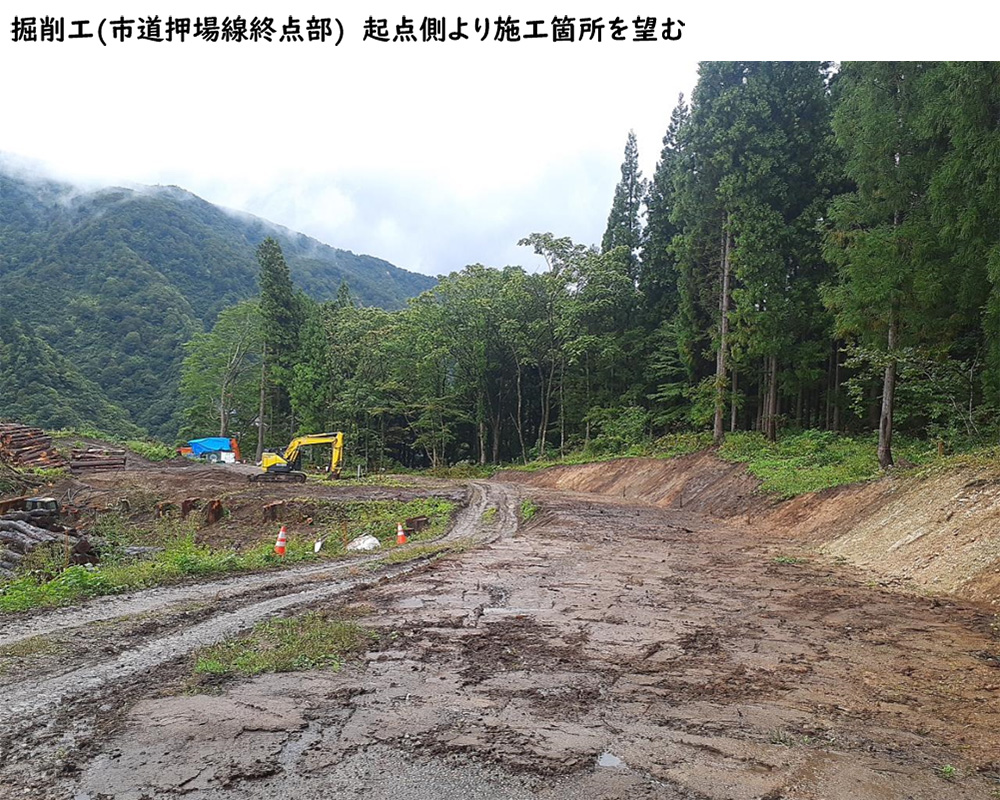 市道押場線の終点部では、約400m3の掘削工を完了させました。