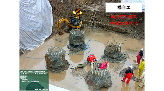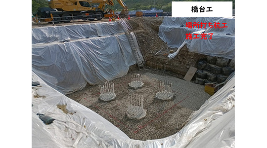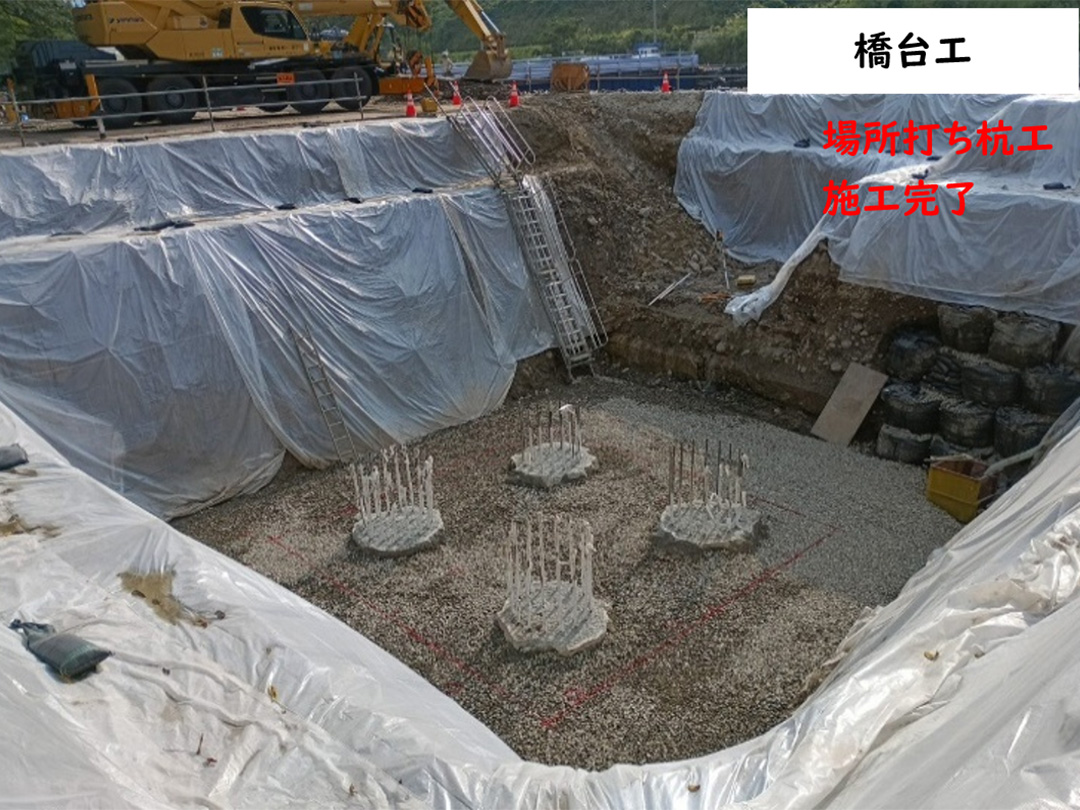 橋台工の場所打ち杭工(杭打設)を8月上旬に施工しました。