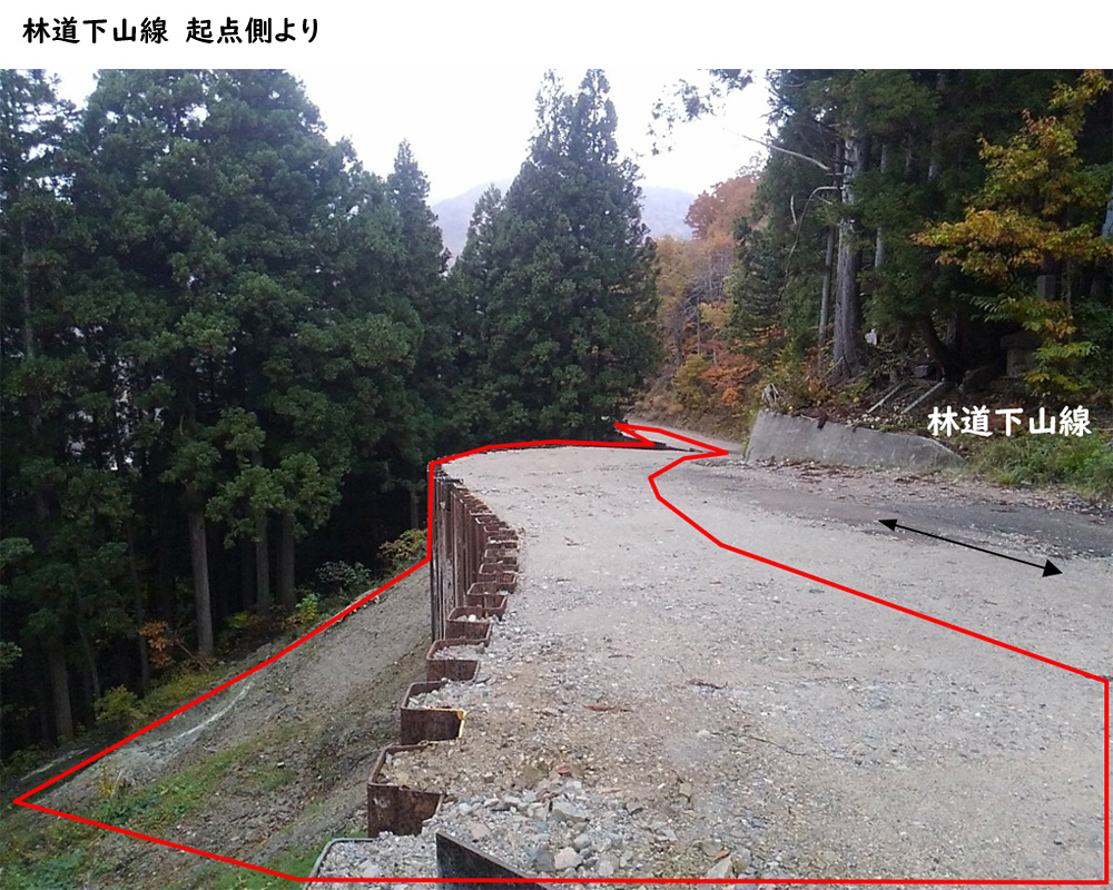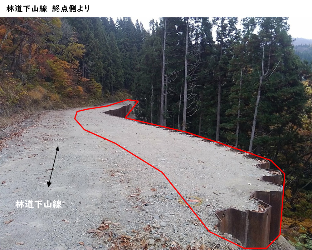 令和6年度からの継続工事で、林道下山線に鋼矢板を打込み、工事用道路として道路を拡幅する工事を行いました。