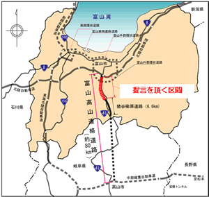 地域高規格道路富山高山連絡道路の富山市楡原〜栗山間について、富山県内の国直轄道路として初めての試みとなる、計画段階から住民の意見を反映するPI(パブリック・インボルブメント)の手法を採用した計画づくりを進めてきました。